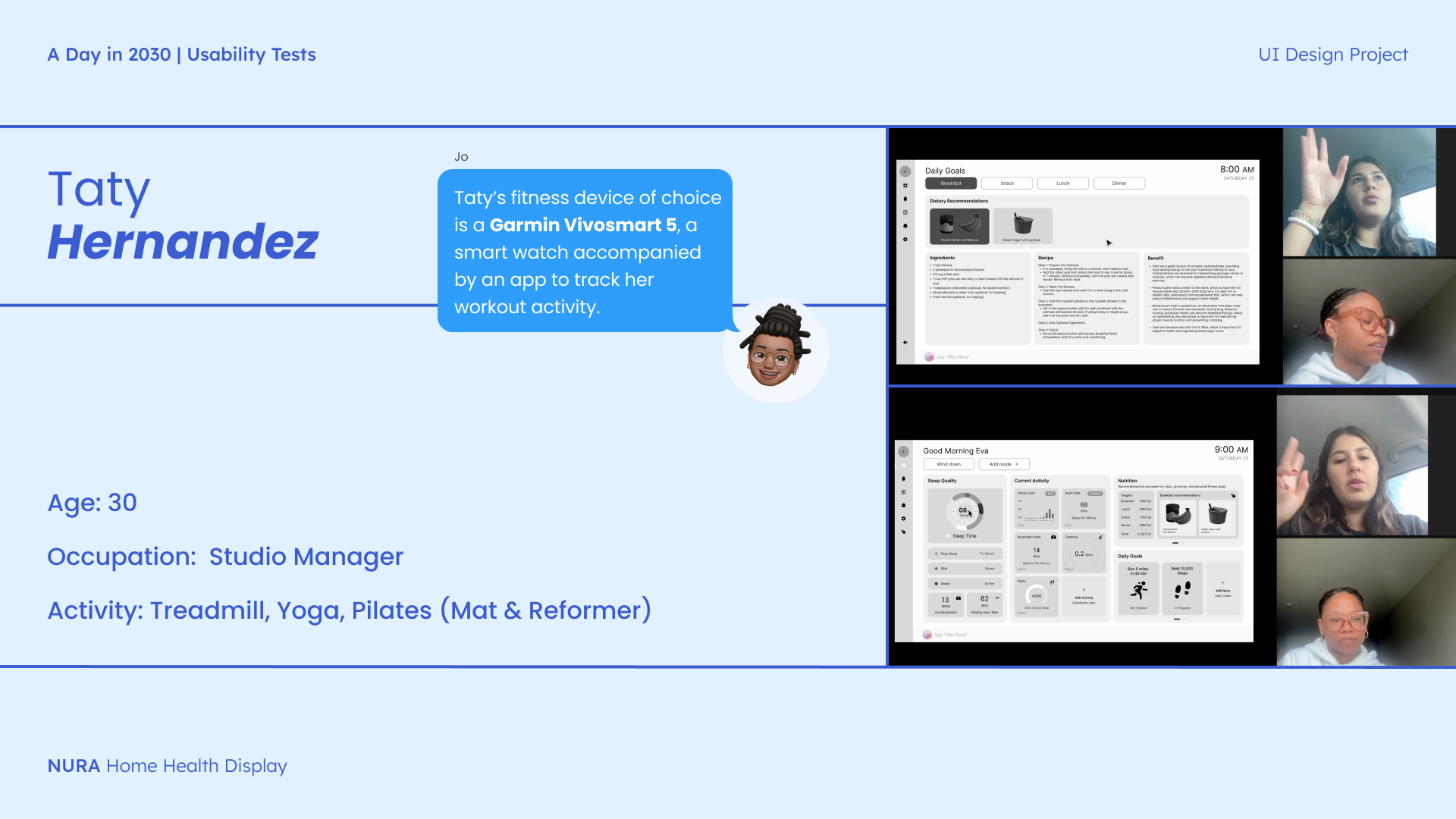 The following storyboard demonstrates A day in 2030 illustrating how the user will interact with NURA.